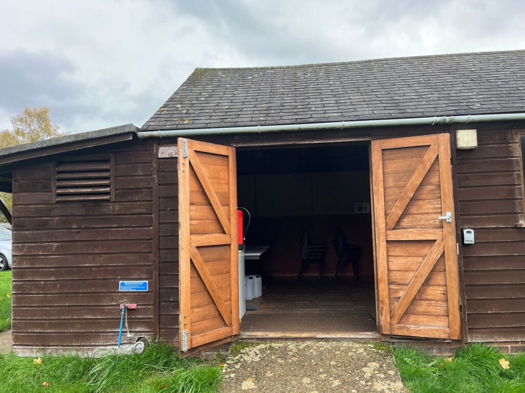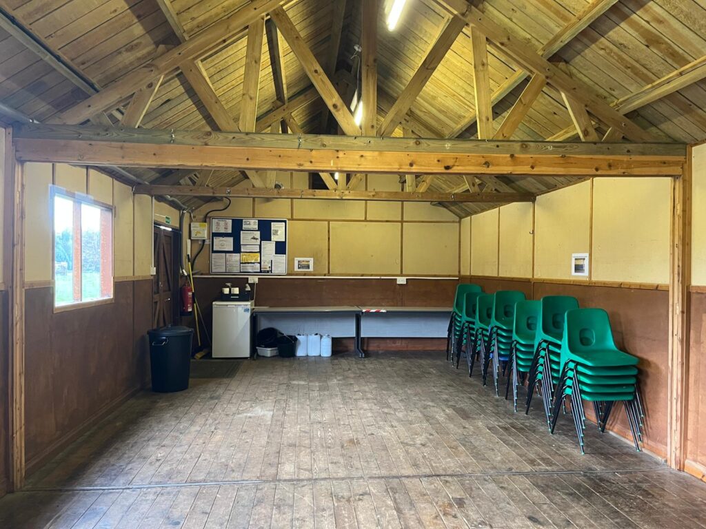 The site comes with use of half the wooden shelter (shared with Northdene) with lights and 4 plug sockets. A fridge, table and stackable chairs are also included.