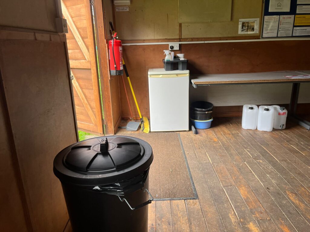 The site has use of half a wooden storage shelter (shared with Abbot John), this has lights and 4 plug sockets. A fridge, table and stackable chairs are also included inside.